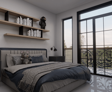 Más adelante, el dormitorio principal se destaca por su amplitud, comodidad y su baño privado, creando un espacio de descanso y privacidad. Al frente, una terraza amplia con vista al jardín posterior ofrece un rincón perfecto para relajarse al atardecer.