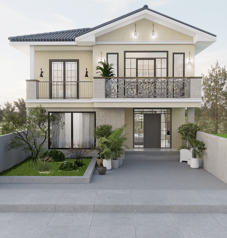 Esta hermosa residencia de dos plantas combina la elegancia tradicional con un diseño funcional y contemporáneo. Su fachada en tonos claros, con detalles en piedra y barandales decorativos, refleja armonía y distinción desde cualquier ángulo.