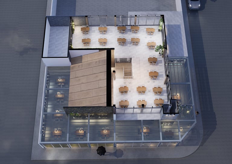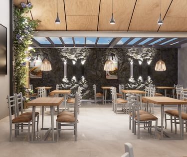 Este proyecto representa una transformación total: de una estructura antigua y sencilla, a un restaurante moderno, elegante y lleno de identidad.